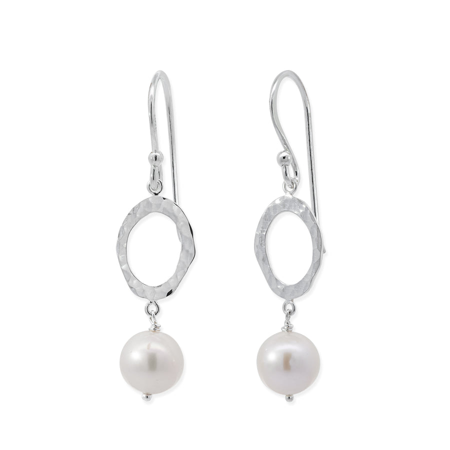 Handcrafted hammered oval earrings in 925 sterling silver feature lustrous pearl accents that catch the light with every movement. The textured metalwork adds dimensional depth, while the dangling silhouette creates graceful motion and visual interest. Designed to elevate both everyday wear and special occasions, these artisanal earrings reflect meticulous craftsmanship and timeless elegance.