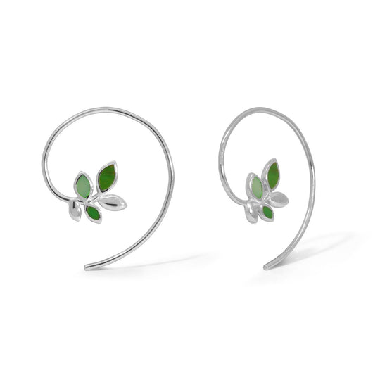 Green Colored Stone Leaf Pull Through Hoops (LB 4410GTQ)