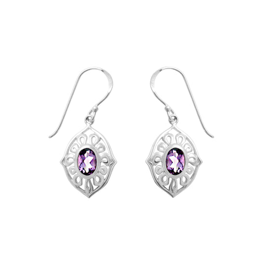 Oval Gemstone Dangle Earrings (SV 470)